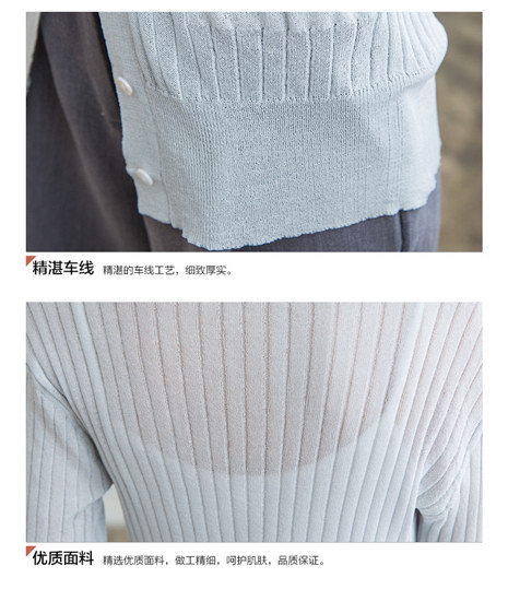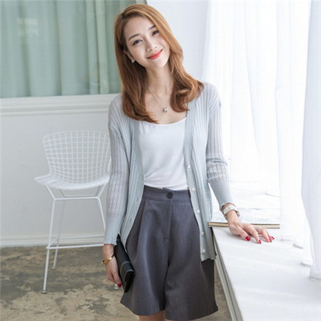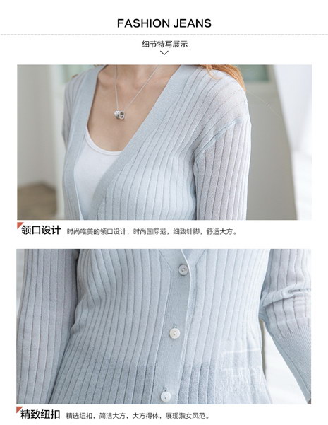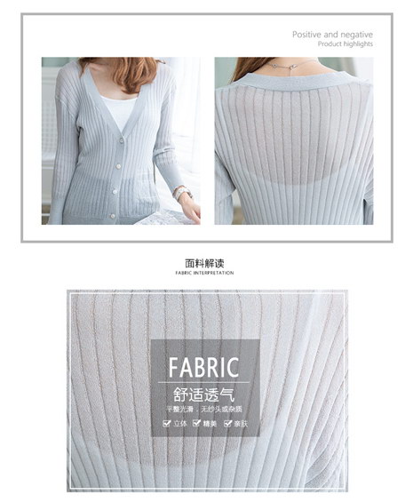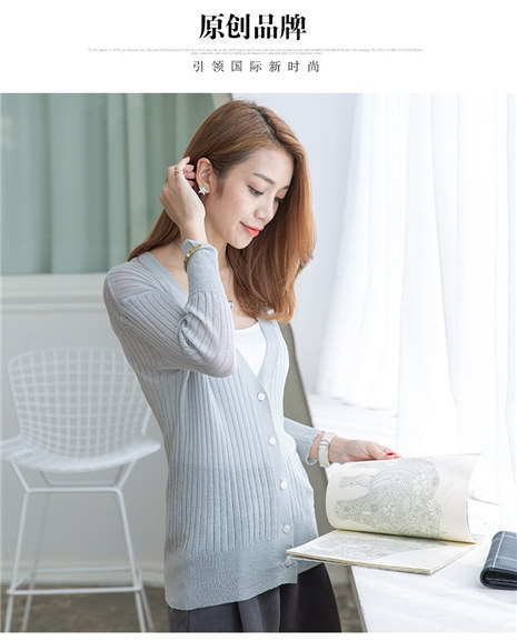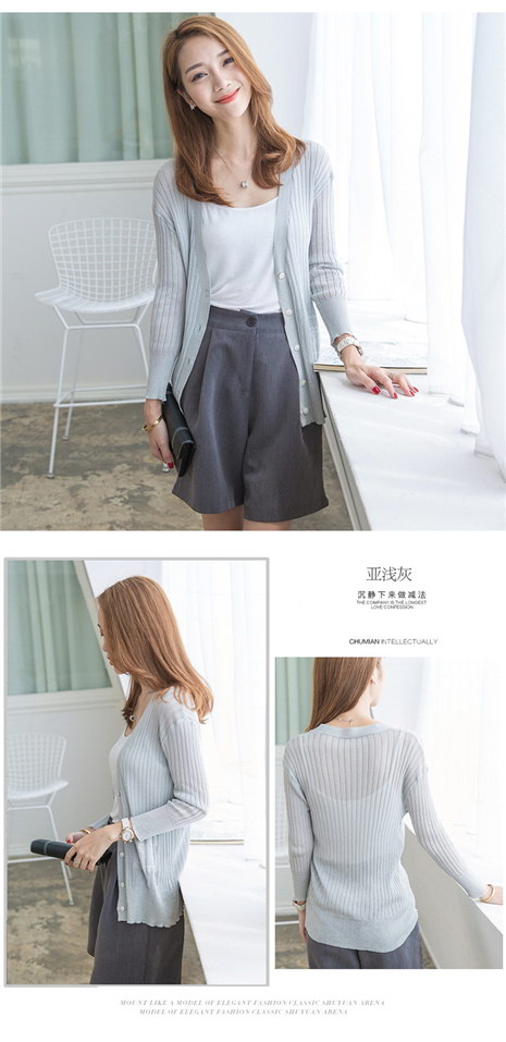 韩版修身V领薄款针织衫女开衫短款空调衫