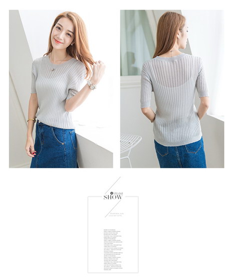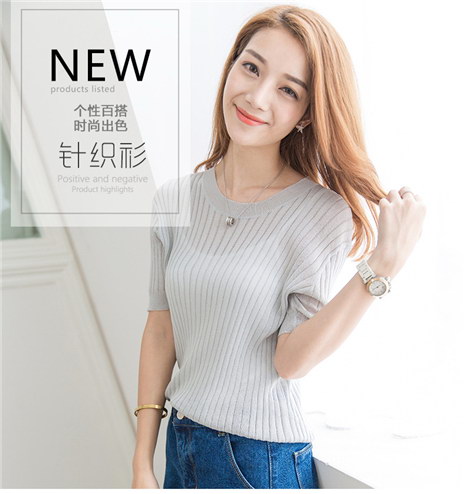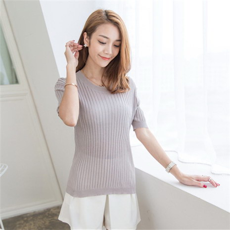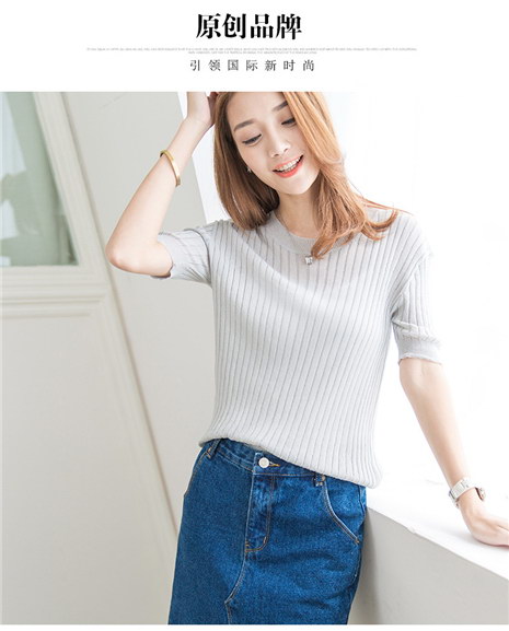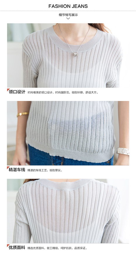 韩版圆领套头修身上衣 曲珠针织衫女